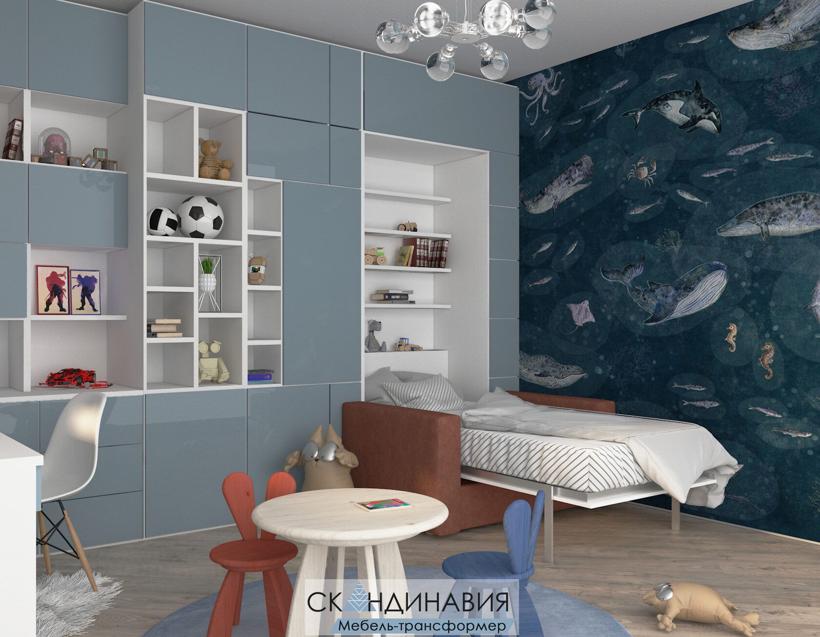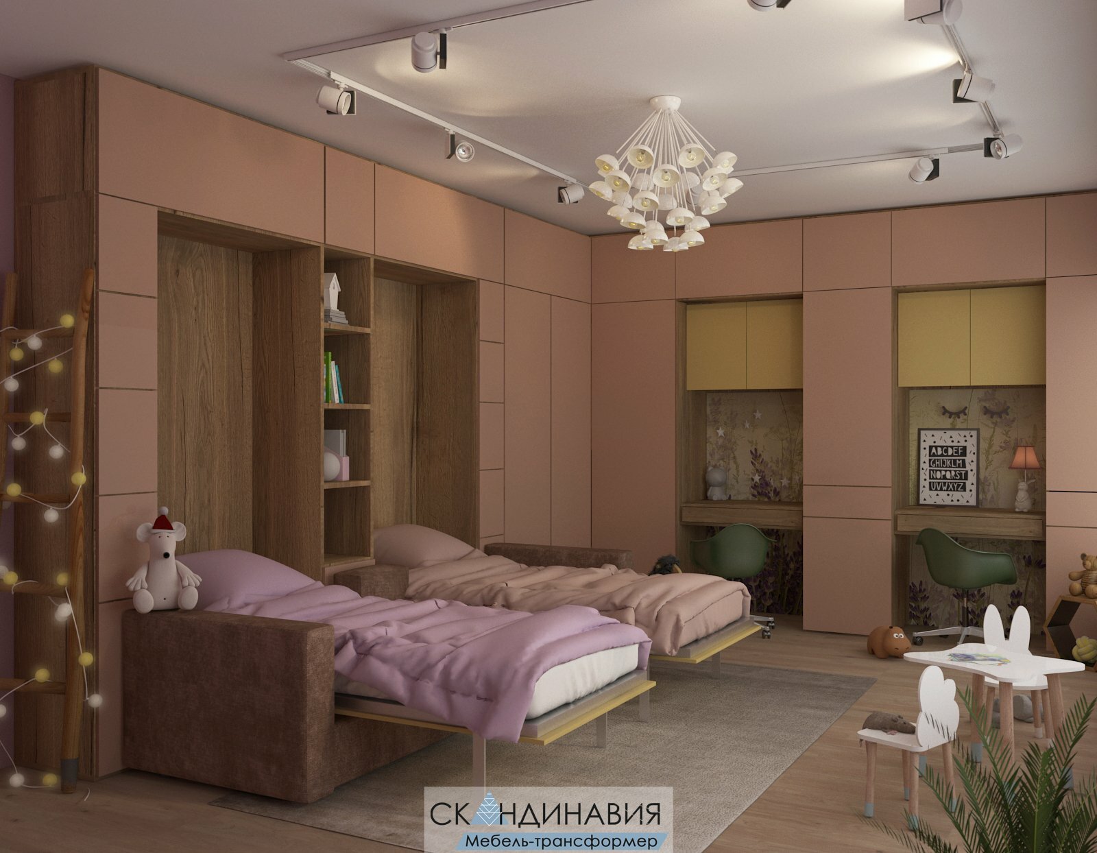 Нам нужна была детская-кабинет, чтобы было 2 спальный места. Комната получилась очень красивая и функциональная...